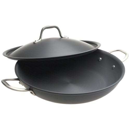 The 12-in. Everyday Pan is an all-purpose pan. Use it for searing, browning and sauteing vegetables and meats. It also works well for making paella, jambalaya and all-in-one meals that you can bring right to the table to serve. The 2 loop handles make for easier lifting.Backed by a lifetime warranty, Calphalon's Commercial Hard-Anodized Cookware is made to professional standards, offering the home chef unsurpassed cooking performance, superior construction and lasting durability. Each piece in the Commercial Hard-Anodized line is made of a heavy-gauge aluminum, all-metal construction with the advanced technology of the Cool V stainless handles. The aluminum construction provides superior cooking performance by distributing the heat evenly so there are no hot spots as you cook. And because it's made entirely of metal, each pan can be used in the oven and under the broiler. The hard-anodizing seals the cooking surface, making it stick-resistant and non-reactive to the foods being cooked. The Cool V handles are designed to stay cool on the stovetop, and are balanced with such precision that the pans feel lighter when you pick them up.